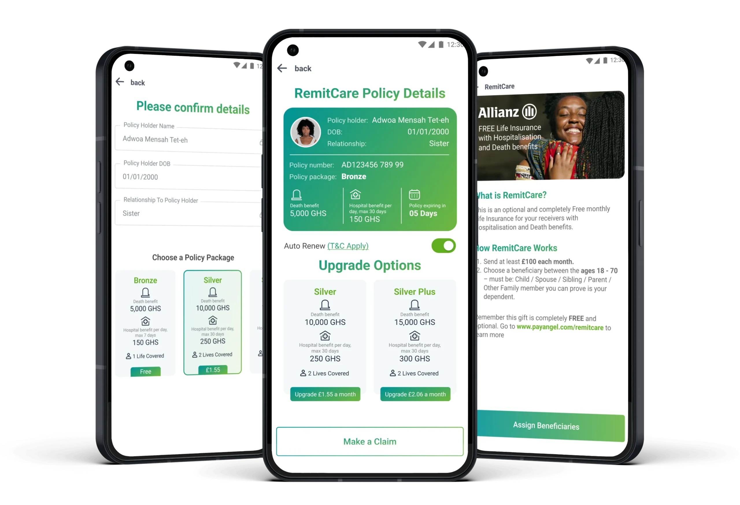 RemitCare is an embedded life insurance benefit linked to PayAngel remittances for Ghanaians receiving money. It is designed to provide peace of mind and financial support in the event of hospitalisation and, in the unfortunate event of death, support for the named policy holder’s next of kin.